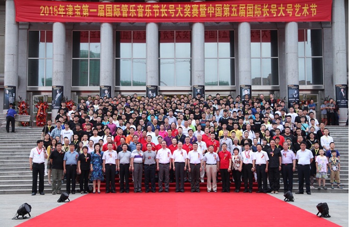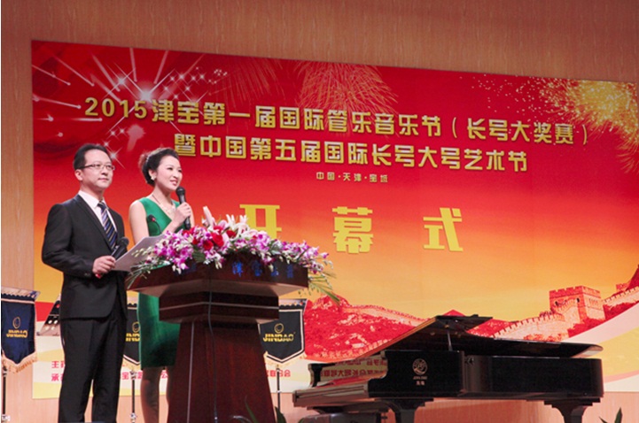 中国乐器网讯 8月3日,2015津宝第一届国际管乐音乐节(长号大奖赛)暨第五届国际长号大号艺术节在天津市宝坻区隆重开幕。该活动由天津市宝坻区人民政府、中国乐器协会、中国音协管乐学会联合主办;天津市津宝乐器有限公司、中国音协管乐学会长号大号联合会承办;中国演艺设备技术协会、中央音乐学院管弦系等作为支持单位。当晚,800多名来自国内外的专家学者、演奏家、长号大号爱好者、学生家长齐聚一堂,共同庆祝音乐节开幕。